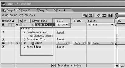 1.首先,在AftterEffect中新建comp1,调入原始素材,如京剧的唱念做打片段。多复制几层(图5),将下面的一个层施加Find edges(查找边缘)特效。上面的一个层施加Hue/sturation并设置参数为-348。然后再来一个高斯模糊(参数建议为27),层模式设置为Mutiply叠合模式。