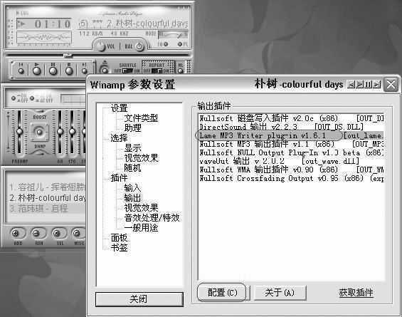 首先,确保你有一个2.8x版本的Winamp,这是Winamp历史上的一个经典版本,相信很多人对此都能达成共识。这里主要用到的插件是lame_enc.dll(http://www.cpcw.com/21/out_lame.exe)。安装之后,所要做的事只是简简单单地选择这个插件,然后播放你所要转换的曲子就行了(图1)。