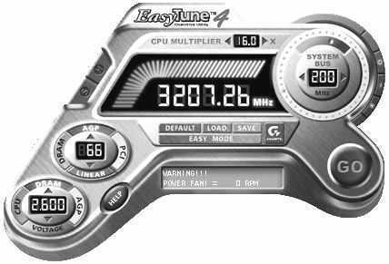 2.EasyTune4。它是技嘉推出的运行在Windows下的超频工具。它的功能相当强,不仅可调整CPU的倍频、外频、电压,还可调整DRAM、AGP、PCI的频率和电压。同时,EasyTune4也是一个很强大的监控软件,可以侦测系统当前的电压状况、风扇的转速等(见图)。