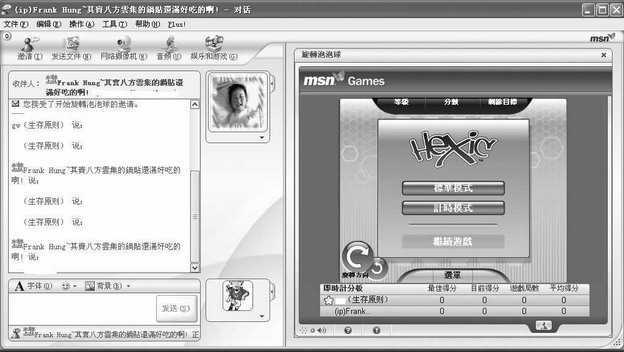 MSN Message(简称MSN)作为微软公司发布的即时通讯软件,具有得天独厚的优势,在国内也占有一定的市场份额。与以前的版本相比,6.2版本新增加了几款在线游戏,我们可以利用它与好友边玩边聊。