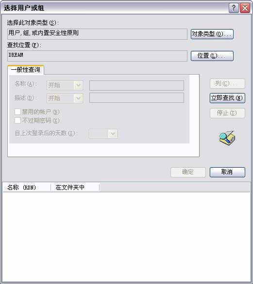 单击图1窗口中的“位置”按钮选择对象的位置(本地用户、组用户、域用户等),再单击“立即查找”按钮,在指定的位置查找所有当前可以访问我们计算机的对象后,再选择那些不想让其访问我们计算机的对象(本地用户、组用户、域用户),将后面这些对象添加到对象列表中来,最后再单击“确定”按钮(图2)。