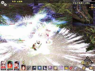 如果玩家修炼近战系,那么主要是手动控制男主角,如果修炼弓或者法术,那么在选定了攻击方式以后不妨让电脑来控制男主角。电脑控制的队员会自动使用快捷栏所选中的技能,用法术的时候攻击频率比玩家自己点要快上很多。遗憾的是不会切换技能,因此如果选中某个法宝,那么电脑就会只用这个法宝,由于使用一次法宝会需要等待很长时间才能再次使用,从而电脑大部分时间都会在原地发呆。而选中近战的话电脑也不会自动使用必杀技,所以让电脑控制法术型角色是最合适的。不过用法术加血的话还是自己控制加血比较好。