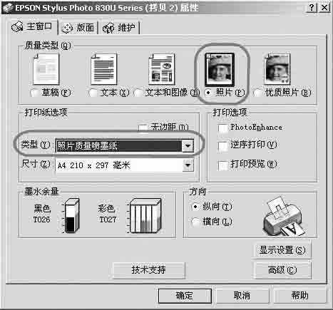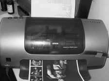 1.彩色喷墨打印机。常见的品牌打印机如HP、EPSON一般都可以支持T恤转印纸,打印机的分辨率不用太高,只要能够支持平常的相片打印(360dpi)就可以了。笔者使用的是EPSON STYLUS PHOTO 830U型号的喷墨打印机,其最高的优化分辨率可达5760×720dpi,完全可以满足相片打印的需要。