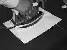 小技巧:如果没有熨衣板,可以用一条毛巾铺在较为平整的桌面上进行,但毛巾也必须用电熨斗烫平。