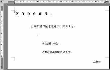 在完成向导设置后,通过“标尺”可以看出信封向导自动生成的Word文件页面大小比向导中选择的普通2号信封尺寸大小要小一些(图3)。