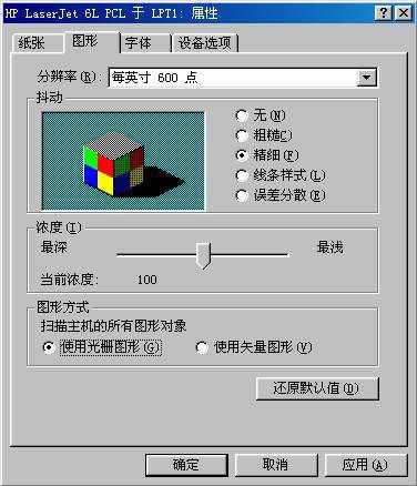 在弹出的属性设置对话框中点击切换到“图形”选项卡设置界面,点击勾选“图形方式”中的“使用光栅图形”项后,一般就可以实现黑底白字的输出效果(图8)。