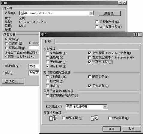 仍以HP 6L激光打印机为例,依次点击“文件→打印”菜单项,在弹出的对话框中点击“选项”按钮,在接着弹出的“打印”对话框中点击勾选“逆页序打印”项即可(图10)。