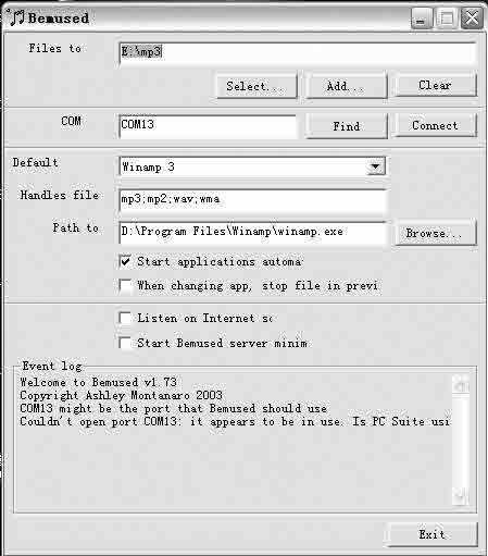 由于笔者的电脑装的是Windows系统,笔者的手机为诺基亚6600,所以要完成这个目标,应该下载Windows/S60版本的Bemused,具体下载地址为http://www.compsoc.man.ac.uk/~ashley/bemused/s60/bemused.zip。