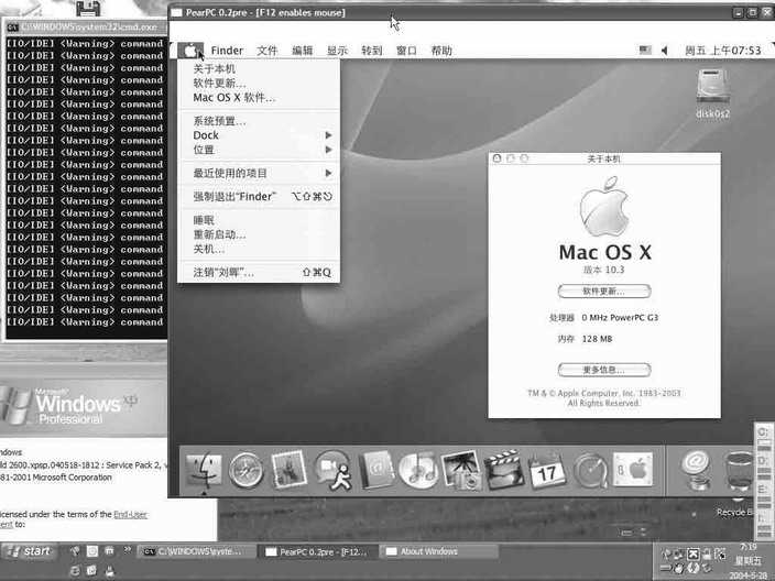 现在PearPC终于有了突破性的进展,只要你的PC配置足够高,那么用该软件在PC上虚拟出一台苹果电脑也未尝不可。笔者试用了这款软件,在一台AMD Athlon XP 1700+ CPU、512MB内存,运行Windows XP Professional的普通PC上成功虚拟出了苹果电脑操作系统。