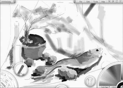 ArtRage模仿自然画笔的功能非常强大,它对各种画笔特性的模仿能力令人叫绝,不仅如此,它还可以模仿不同的纸张质地,让你完全感觉不出只在电脑中作画。它所画出来的效果和用颜料在纸上画的效果几乎一样。操作十分方便,像图1这样的作品几乎是一口气就可以完成。