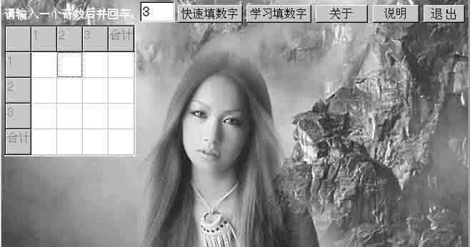我使用的软件是Borland C++ Builder,程序界面如图1。输入一个奇数n并回车后将出现一个行列数为n+1的表格。点击“快速填数字”按钮,程序将迅速把1~n2填到相应表格中并做统计。点击“学习填数字”按钮,程序将每隔0.7秒依次填入一个数字,犹如放动画一般,直到填完为止。图1的n为3。