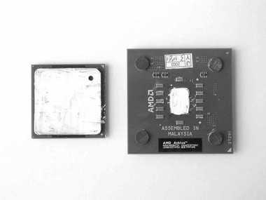 AMD处理器的巨大发热量一直被对手诟病,因此,很多即使选择了AMD CPU的用户也不敢掉以轻心,宁愿忍受高噪音的折磨,也要为它搭配高转速的散热风扇。其实从K7的雷鸟到现在,AMD在“温度控制”方面所做的努力是有目共睹的,功耗和发热量早已降了下来。对于未超频的Athlon XP,3000转/分的超静音风扇就已经足够了。自Athlon XP起AMD就在处理器内增加了温度监控电路,只要搭配的主板有相应电路的配合(很多主板厂商称之为“烧不死技术”),当CPU温度突然上升到一定数值的时候,系统就会立刻自动关机或重启,保护CPU不被烧坏,目前几乎所有支持AMD CPU的主板都带有这一电路。同时,高转速散热风扇的高噪音、磨损大致使风扇的寿命变短,停转或风扇马达烧坏等故障的发生几率也就比低转速的风扇要大得多,部分劣质的高转速散热风扇在工作时还会产生振动,直接危及CPU核心的“性命”!