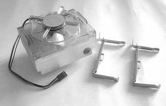 今年陆续见到有厂家在中端的散热器上应用一些原本在高端产品中才能见到的技术,例如热导管的应用。热导管散热效果理想,但由于成本太高,一直只在发烧级的DIYer里流行。笔者已经见到有厂家推出了售价200元左右的产品,其散热方式是将两根热导管置于散热器的底部,把散热器底部的热量直接传到上方的全铝散热片上,并且在侧面装上一个散热风扇,而底部采用铜与铝结合的方式。也就是说,除去热导管之后,它就是一个完整的散热器,而热导管只是一个起辅助作用的附件罢了。