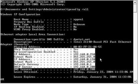完成了以上设置后,IP地址是否已经生效了呢?这时我们就可以使用“ipconfig /all”命令进行验证(图2),如果你发现网卡已经捆绑了多个IP地址,其中一个为DHCP动态IP地址,其他的为手工添加的静态IP地址,这就说明你已经成埂有了静态IP地址和动态IP地址。
