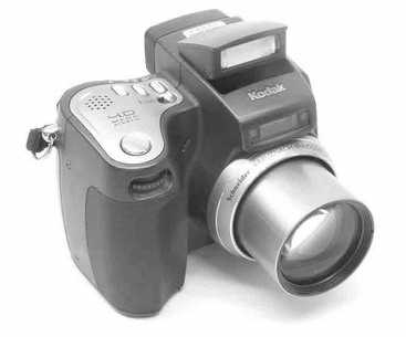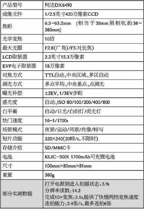 柯达的DX6490是去年8月发布的产品,是它的高端消费类数码相机市场的主力产品。它采用珍珠黑外壳,握柄处采用了磨砂防滑处理,握持感比较好。该机采用了一块1/2.5英寸420万像素CCD,镜头为施耐德的KREUZNACH VARIOGON 6.3~63.2mm(相当于35mm照相机的38~380mm)10×光学变焦镜头。这款相机外观上的吸引人之处是它那15.3万像素,2.2英寸的LCD屏。它的EVF电子取景器更是达到了18.3万像素,而且,这个EVF取景器的成像纵深感很强,这对构图和观察构图的层次感有很大的帮助。