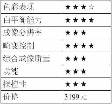 DX6490的色彩比较柔和,稍有些暗淡。自动白平衡基本准确,但没有手动白平衡依旧是一个遗憾。DX6490的分辨率读数达到了14.2,在参测产品中础中上水平。桶形畸变比较明显,长焦端的枕形畸变则不太明显。