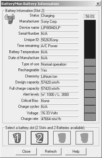 BatteryMon最多支持四块电池,但一般的笔记本电脑最多也就只有两块电池,因此对于一般的笔记本电脑用户来说,该软件已经够用了。