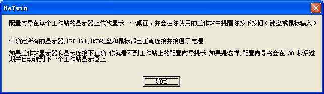 2.安装完软件后,必须重启以便继续配置系统。重启后出现BeTwin的设置向导(图3)。确定后按各个屏幕提示配置鼠标键盘。配置完后重启系统。