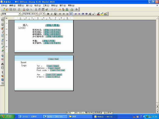 Step1 点击“采用样式→名片1”,出现如图2所示的画面,这就是一个简单的名片模板,你可以直接在上面添加文字,插入图片。