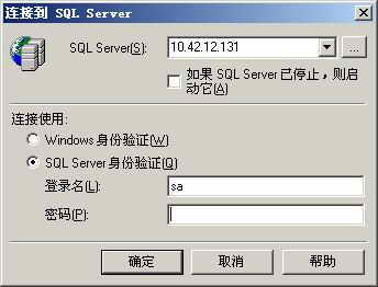 行动前,笔者先在电脑上点击“开始→程序→Microsoft SQL Server→查询分析器”,从弹出的窗口中输入存放电影的那台机子的地址(如图),然后选择“SQL Server身份验证”,输入登录名sa,密码为空,再点“确定”。哈!连接成功了,此时选择“master”数据库,在查询窗口中输入: