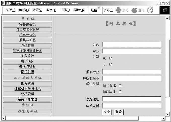 校校通工程完工后,很多学校开始建设自己的网站,大大提高了对外宣传的力度。既然有了网站,学校就应该充分地利用网络资源,自建一个网上招生注册系统,这样,学生就能坐在家中远程报名注册了。