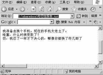 第四步:告诉准备参与群聊的朋友该文本文件的具体位置(例如\\happy\sharedoc\可行性报告.txt),并让他们都按照第2、3步进行操作。如此设置之后,你们便可以开聊了(见图)。