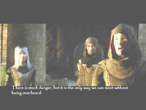 下级图书馆中没有任何人,在Caduca的会议室找到一张字条告诉你他在调查被谋杀的Caduca的死因。来到靠东的雕像大厅(Gall of Statues)能够见到他。刚刚进来就发现中了陷阱,一些石像活了起来向Garrett攻击。这些东西不怕普通箭矢和近身武器,只有地雷和火箭能够伤害他们。最好不要和他们冲突,从东部的出口逃出这里。