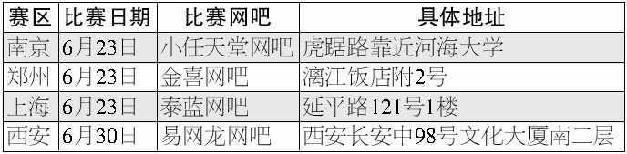 本次大赛预赛已经在6月15日全面展开,在原有的成都、重庆、北京、沈阳、深圳、广州、南京、上海、郑州9大赛区的基础上,又新增了西安赛区。发稿时止,半数以上的赛区已经结束了预赛,对于接下来举行的比赛,希望各大城市的报名参赛选手前往所在赛区的指定预赛活动现场进行比赛。十城市之外报名的CS MM前往报名城市参加预赛,费用自理。