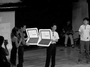 陈贤泉、王大海、楚熊,每人均拍得一台IBM笔记本电脑