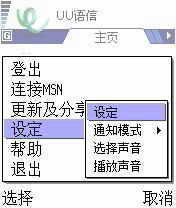 启动UU与MSN互通功能,可选择“设定”菜单中的“设定”命令(图2),键入个人MSN 账号和密码,如果连接方式设置为“开启”,客户端启动后会自动连接MSN。另外,也可以在主页面通过“选项→连接MSN”命令,手动连接MSN 。如果连接MSN成功,即可按住通话键,向MSN名单中的好友发送语音信息,或发送文本、图片、E-mail信息。