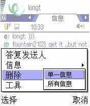 删除信息:选择要删除的信息,按下手机删除键删除该信息,或通过“选项→删除→单一信息”命令删除该信息(图3),也可以通过“选项→删除→所有信息”命令删除所有信息。