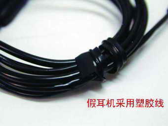 (3)真品耳机采用的是尼龙线作为耳机线,这样可以防止耳机内部线的氧化。而假货耳机采用的是普通的橡胶外套线(图4)。
