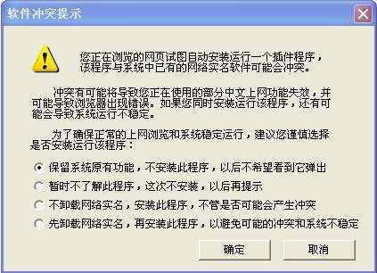 (1)3721网络实名:在安装协议中有冲突说明、冲突的解决方法和卸载本软件的说明。