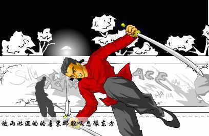 《双刀》是我见到的,为数不多的武侠精品动画(图1)。精品的意义并不仅仅代表优美的画风,动感的音乐节奏,流畅的动态效果。我所认为的精品主要是指完美的艺术表现形式。总体来说,这个动画还是相当成功的,因为无论是在动画的表现形式,场景的设置,动画的效果,还是日本漫画式的打斗方式,都构成了一幅完美的现代武侠精品。值得一提的是,片中的色彩构成主要以黑白两色为主,烘托出本片肃穆的气氛,然后配以彩色的人物特色,更加丰富了人物表现的方式,令人赏心悦目。