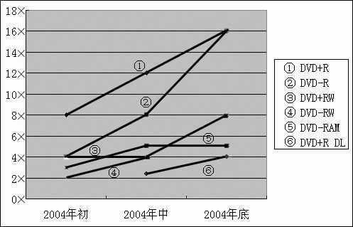 综上所述,2004年下半年的DVD刻录机市场,正在朝着容量更高、速度更快、功能更强的目标迈进。随着技术的进一步成熟和后续产品的陆续跟进,相信到2004年底,这些新技术会广泛应用并且会有让我们容易接受的价位。