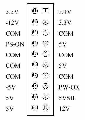 ⑴无PG信号或信号延迟时间不足是较为典型的电源故障。检测时可在开机状态下借助万用表的电压挡,测量20芯电源插头(如图)第1脚对地有无3.3V电压。如果没有电压则可切断电源,并拆开电源外壳作进一步的检查。一般情况下引起无PG信号的主要原因多为负责PG信号控制的晶体管击穿或延时电容漏电所至,将它更换后故障即可消除。
