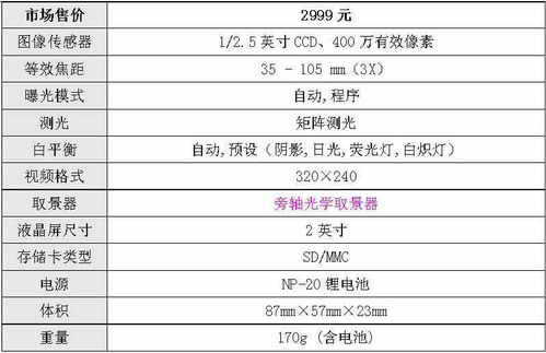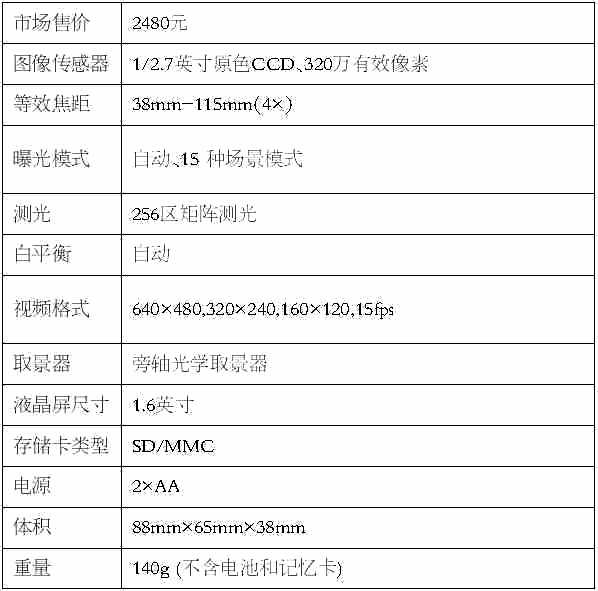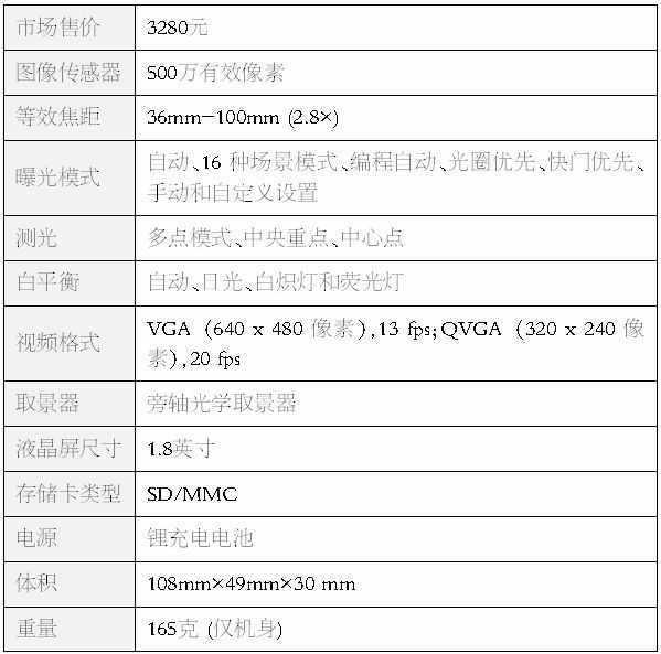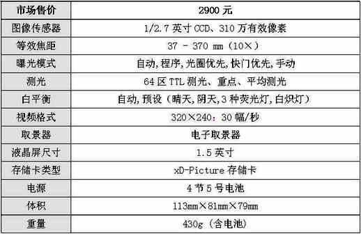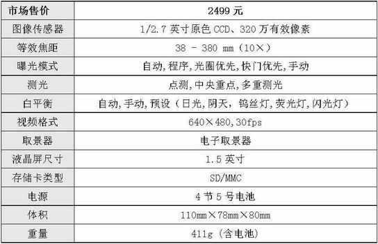 点评:这是目前较为便宜的300万像素、10倍光学变焦数码相机,这款相机不但拥有不错的操控性能,更具有许多娱乐特性,如能拍摄640×480@30fps的电影短片。如果你正好需要一款超大变焦的数码相机,那么或许它会是个很不错的选择。