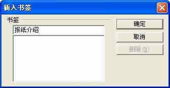 1.启动“飓风网页编辑”,选中链接的目标(文字或图片等),执行“插入→书签”命令,打开“插入书签”对话框(图1),输入一个名称(如“报纸介绍”),然后按“确定”按钮返回。