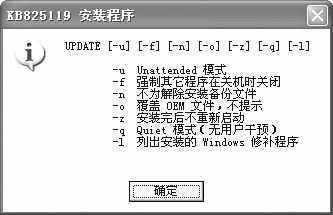 在Windows XP SP1系统需要安装的补丁中,KB825119以前的更新补丁普遍采用图2中所列参数,KB825119以后的补丁均采用图3中所列的参数。