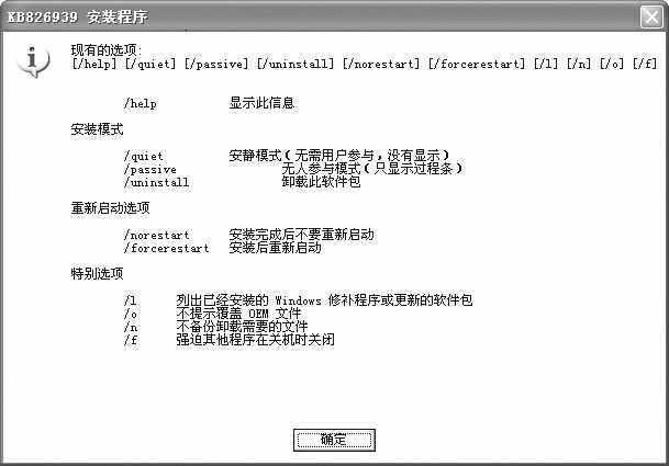 Windows XP的补丁中,带有安装程序图标的补丁,都采用图1中所列的参数。以KB开头不带安装图标的补丁部分采用图2中的参数,另一部分采用图3中的参数。