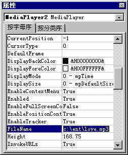 3.选择这个窗口,点击“控件工具栏”上的“属性”按钮,在弹出窗口中找到“FileName”项,输入插入文件的路径(图2),关闭属性窗口。