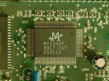 再来看看光驱的大脑──数据处理芯片,如图3。目前市场上九成以上的光驱产品都是使用MITSUMI公司生产的处理芯片。其中一部分是使用单芯片的形式,而这台SONY光驱采用的是双芯片的设计,即有两片MITSUMI处理芯片。