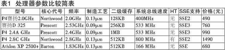 在选择处理器时,恐怕很多消费者更多地只是从价格上去考虑。而处理器的性能,因为条件的限制,恐怕在脑海中只有模糊的感性认识。因此我们收罗了几款目前使用较多的处理器,从多个应用方向进行比较,以方便消费者的选择。表1列出了这几款处理器的规格。