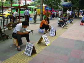 在电脑城门口百通看见不少小摊前纷纷打出一个牌子“高价回收墨盒、硒鼓……”,小贩们悠闲地看着杂志,不时有些GG、MM把旧的墨盒硒鼓拿去换点小钱,走时还喜形于色,觉得自己把今天跑电脑城的车费赚回来了……