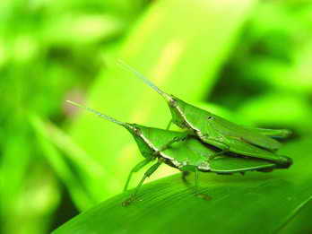 说到拍摄时机,清早的气温较低,栖息在灌木、草丛、瓜藤等处的虫虫还处在半梦半醒之间,这时候它们的警惕性较差,行动也比较迟缓,满地的露水更是暂时妨碍了它们的自由行动。加上清晨初升的阳光照射角度较低,利于拍摄者运用各种手法控制和运用光线,拍摄出具有独特光影效果的佳作,所以这时候是拍摄昆虫的最佳时机。此外,盛夏时节,如果遇到雨过天晴的天气,可千万别错过了这一拍摄昆虫的宝贵时机,这个时候不仅光线条件极佳,而且昆虫的活动受雨水影响而略显迟钝,也是拍出佳作的大好时机。另外,秋高气爽时节,是蚱蜢等许多昆虫交配的季节,共浴爱河的昆虫们往往完全沉浸在生命的欢歌中,在卿卿我我的缠绵中全然忘记了外界危险的存在,警惕性降到了几乎为零的地步……对于那些细心的摄影者来说,许多精彩的画面将就此而诞生。