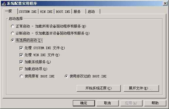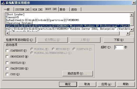 点击“BOOT.INI”选项卡,此时会出现如图所示的界面(图2),你的电脑中如果安装有多个操作系统,那么就可以在此对多启动菜单进行设置。