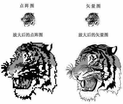 是不是所有的图像都不能无限地放大呢?当然不是,有一种格式──矢量图是可以无限放大的。矢量图像,也称为面向对象的图像或绘图图像,在数学上定义为一系列由线连接的点。矢量文件中的图形元素称为对象。每个对象都是一个自成一体的实体,它具有颜色、形状、轮廓、大小和屏幕位置等属性。既然每个对象都是一个自成一体的实体,就可以在维持它原有清晰度和弯曲度的同时,多次移动和改变它的属性,而不会影响图中的其他对象。基于矢量的绘图同分辨率无关,所以可以无限放大。这样格式的图像需要通过矢量软件绘制才能得到,比如CorelDRAW、Illustrator等,它与位图的比较见图3。