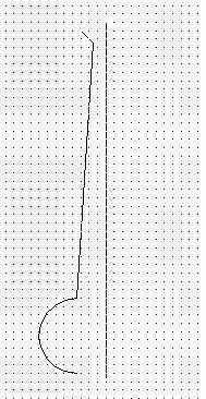 下面绘制花瓶轮廓。单击菜单“绘图→多线段”,命令行会提示指定起点,在基准线段左侧较上端位置单击指定起点,然后继续指定第二点和第三点,最后绘制出一个半圆形的圆弧,再绘制完成的花瓶轮廓如图2所示。