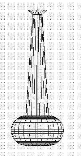 下面开始制作旋转曲面。单击菜单“绘图→曲面→旋转曲面”,这时命令行会提示选择要旋转的对象,马上单击绘图区中的花瓶轮廓,正确选择后花瓶轮廓线会变成虚线。然后命令行提示选择定义旋转轴的对象,这时单击最开始绘制的基准线段。完成后,命令行提示指定起点角度,按回车选择。命令行又提示指定包含角,继续按回车选择。这时花瓶的三维图就就旋转出来了,如图3所示。