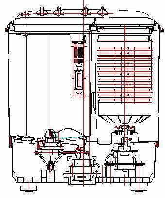 我用AutoCAD的目的不单是为了甩掉图板,而是想通过AutoCAD来设计产品,而且多年来一直都在用AutoCAD做产品设计,到目前为止共设计的全自动和双桶洗衣机产品共有6个系列,将近20个型号(右图为双桶洗衣机装配图的一部分)。